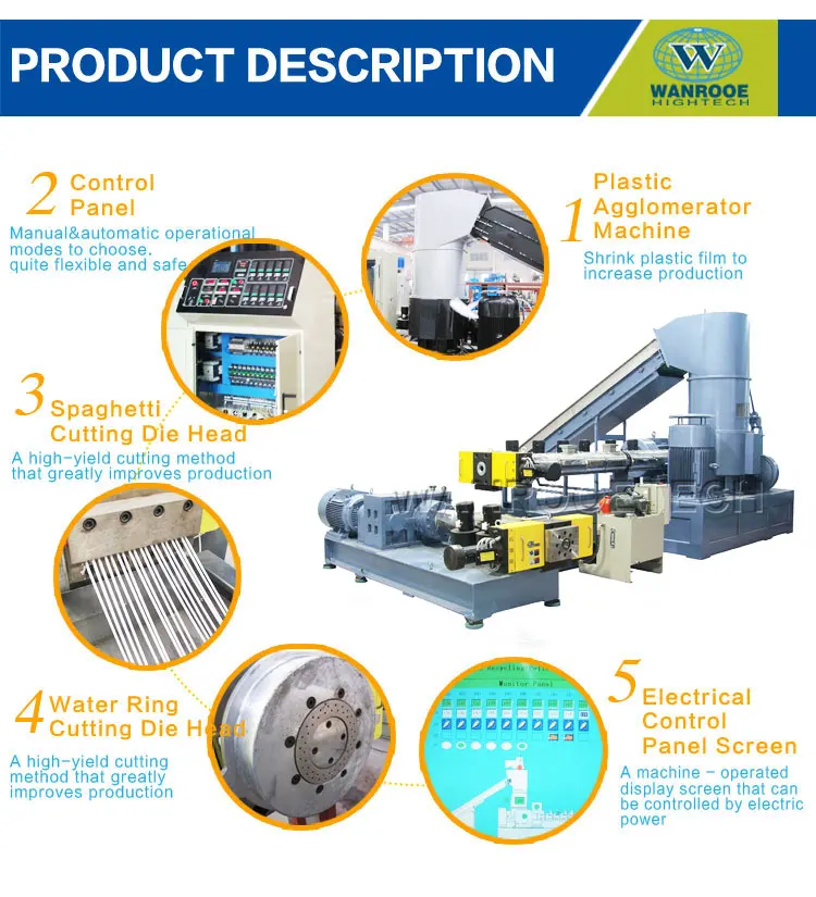 5. Water ring granulator machine, attached with dryer. 6. Single screw extruder, with specially designed screw, barrel, venting system, ensure the good quality of the final products.