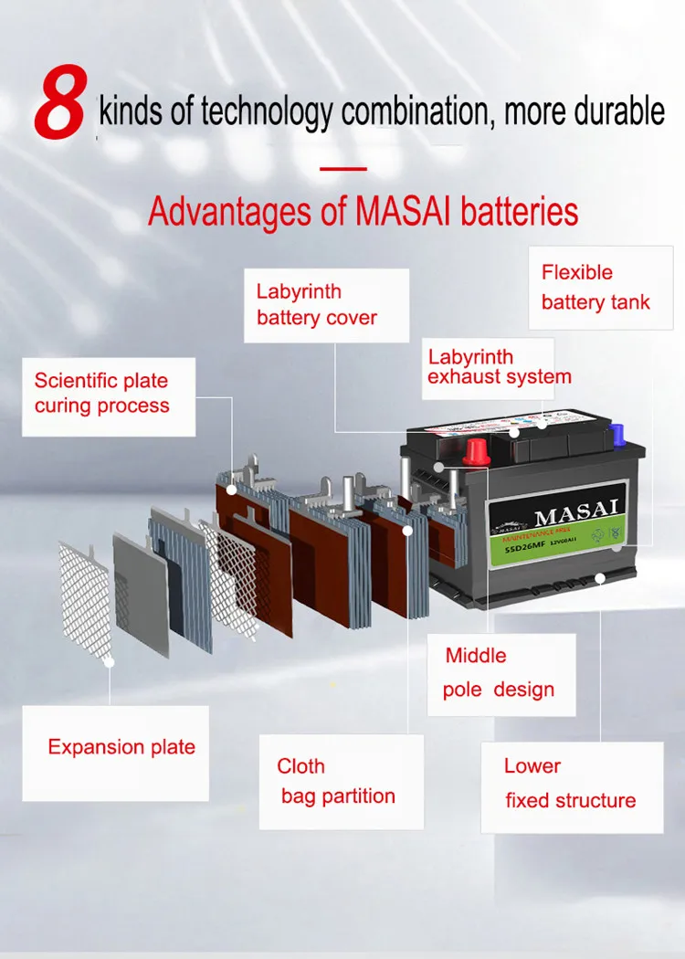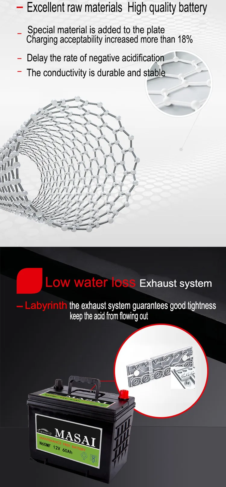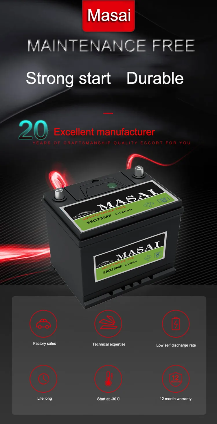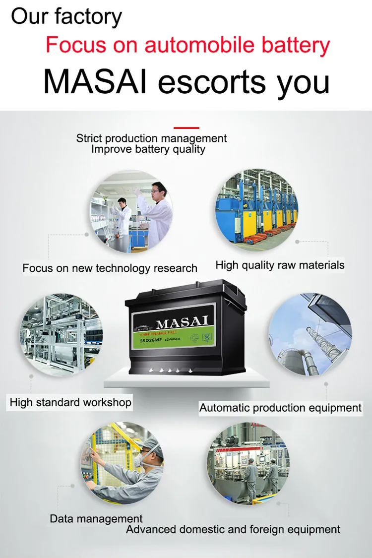 | Brand Name: | MASAI or OEM car battery; | Size: | 238x173x230 automobile battery; |