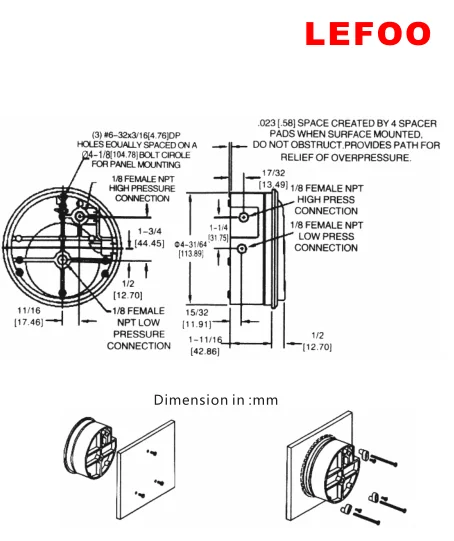 LFB differential pressure gauge is a kind of elastic pressure gauge which makes use of simple, non-friction magnetic spiral movement and rubber diaphragm as the sensitive element to measure the pressure. It indicates thepressure of tested gas by pointer, no matter it’s positive, negative or differential pressure. This design has the function of shock resistance, anti-shaking and overpressure proof. And it’s no necessity to fill with liquid, to avoid problem of gasification, freezingor smell.