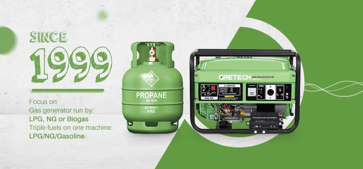 3, The emission from LPG or NG is much cleaner than the gasoline generator. As the LPG or NG can be mixed better with air than the gasoline fog. Then they can burnt more completely than the gasoline. |