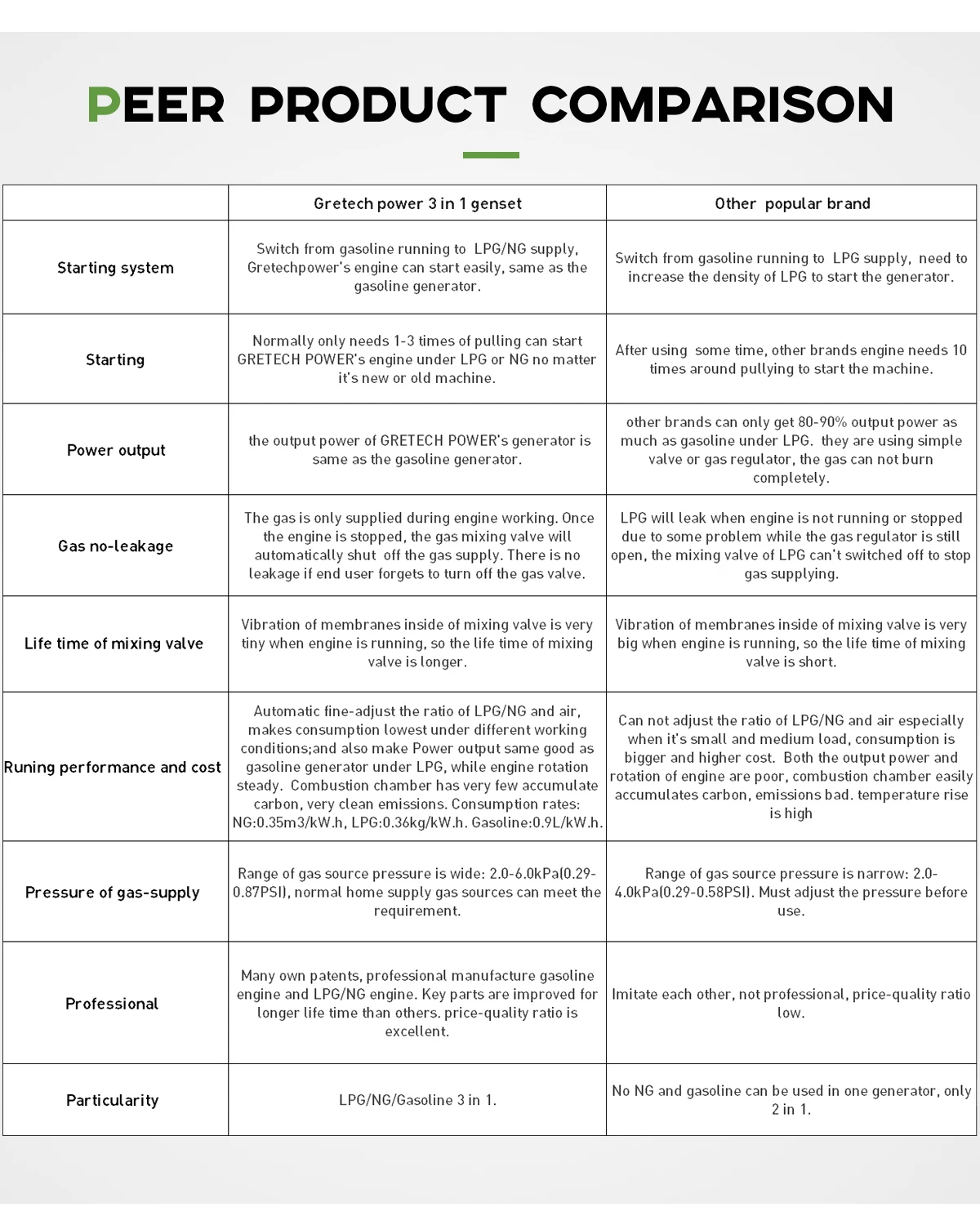 11, Gretech Power’s gas generators has many advantages comparing with other brands gas generator. Details pls find the below addendum II. |