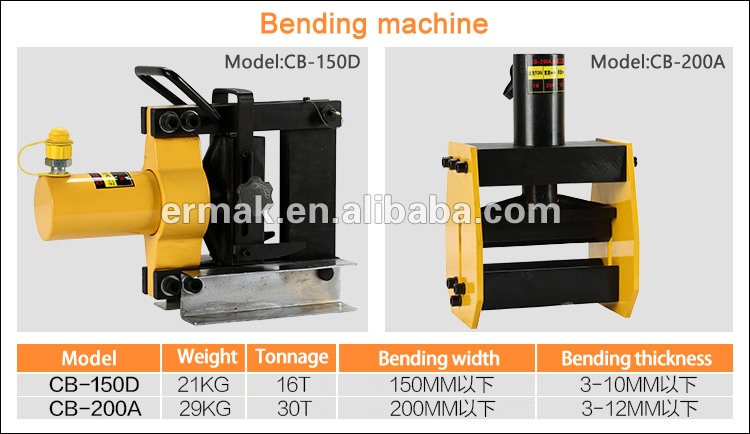 CB-150D hydraulic bending machine is suitable for bending metal materials such as copper, aluminum and iron plates. It has a curved angle style. The bent bus bar will not be twisted, and the workpiece can be easily taken out after bending. The product is sturdy. When bending long copper strips, N-type or L-type can be used to take out the card, so that the whole row can be taken out without hindrance. The busbar can be bent 0-135° in its vertical plane.