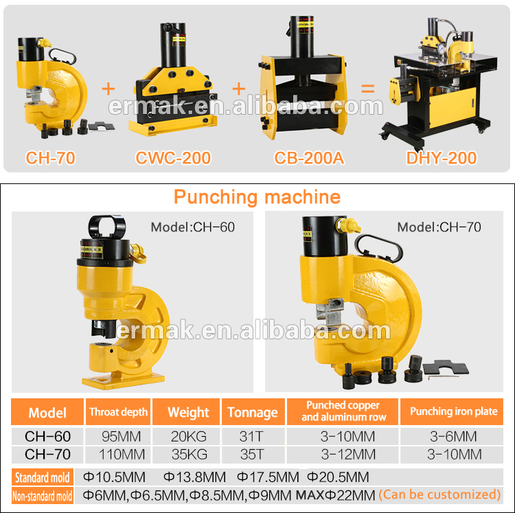 CH-60.CH-70 split hydraulic punching machine is specially used for punching metal plates such as angle iron, flat iron and copper plate. It is especially suitable for operations in electric power, construction and other industries.