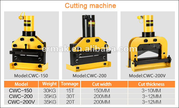 CWC-150.CWC-200 is a tool for cutting copper and aluminum busbars. The knives are made of alloy steel and heat treated. The fracture is smooth and tidy, flat and not deformed, and there is no waste on one side. CWC-200V copper bar is cut into arc copper chips.
