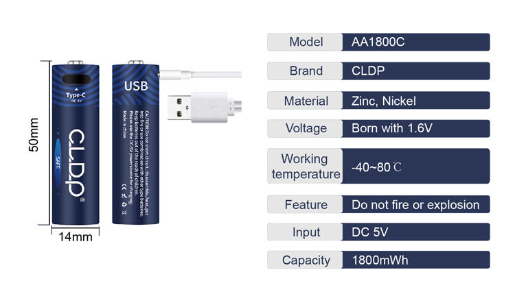 | AA USB-C rechargeable battery: 1800mWh; AA rechargeable battery: 800mWh 1500mWh 2500mWh; AAA rechargeable battery: 500mWh 700mWh 900mWh; | |