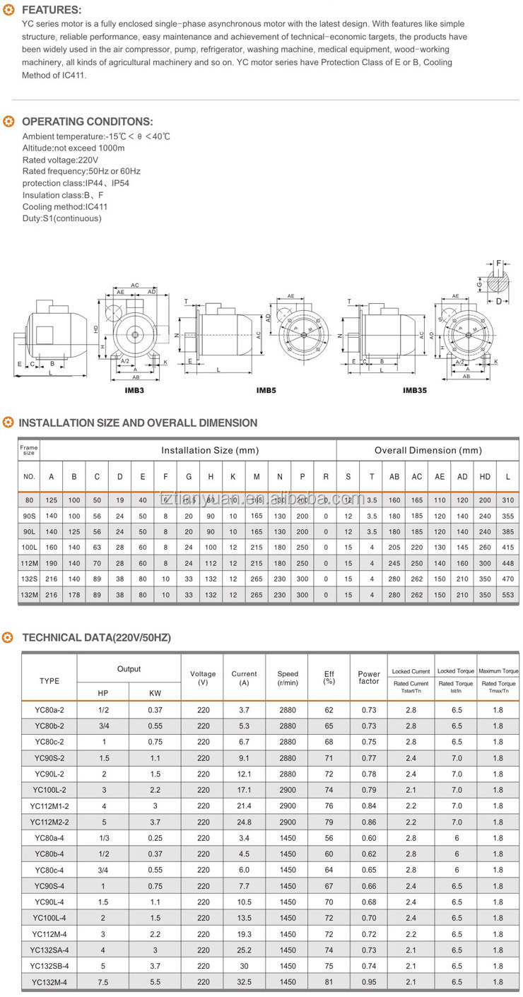 High performance YC motor low speed is a TEFC squirrel cage motor