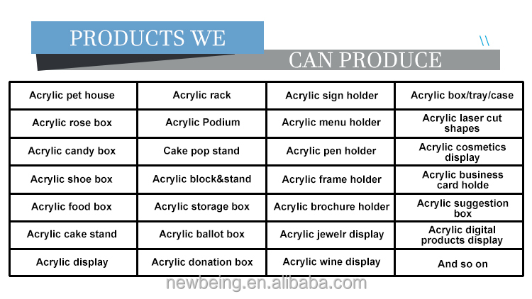 Acrylic material with SGS, CE certificates, our factory has obtained BSCI certification.