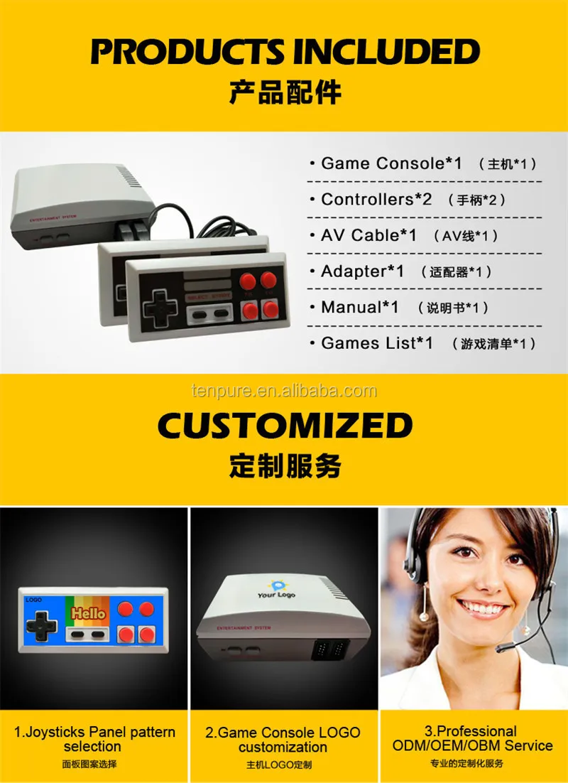 | Material: | game console retro, 8 bit tv game console; | Type: | Family Retro TV Game Console; |