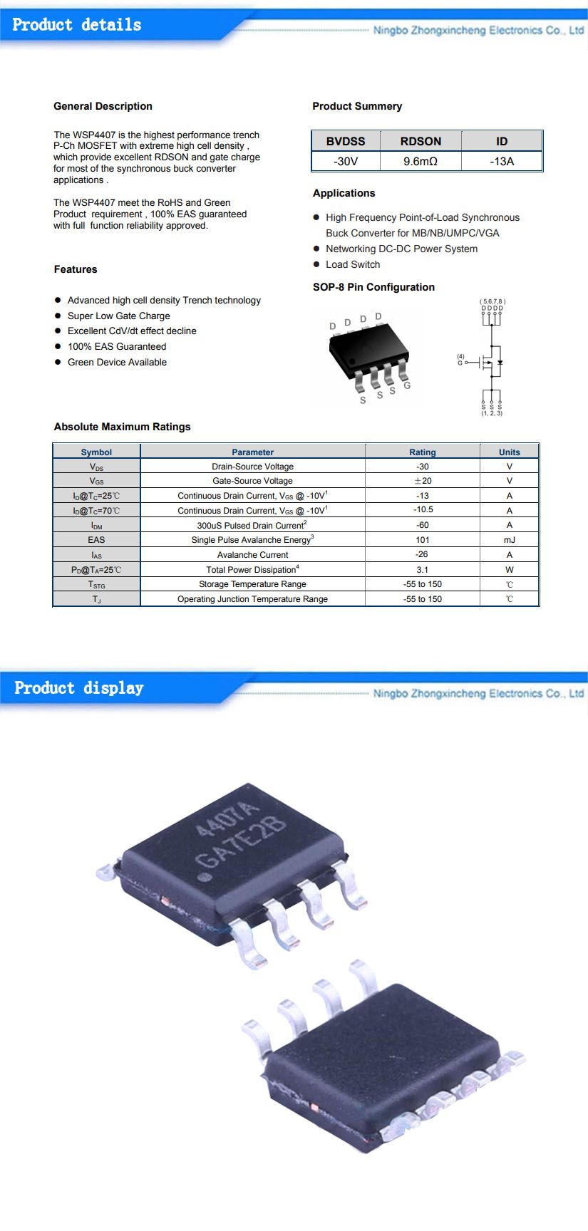 | model: | AO4407A | payment terms: | L/C, Western Union, D/P, D/A, T/T, MoneyGram |