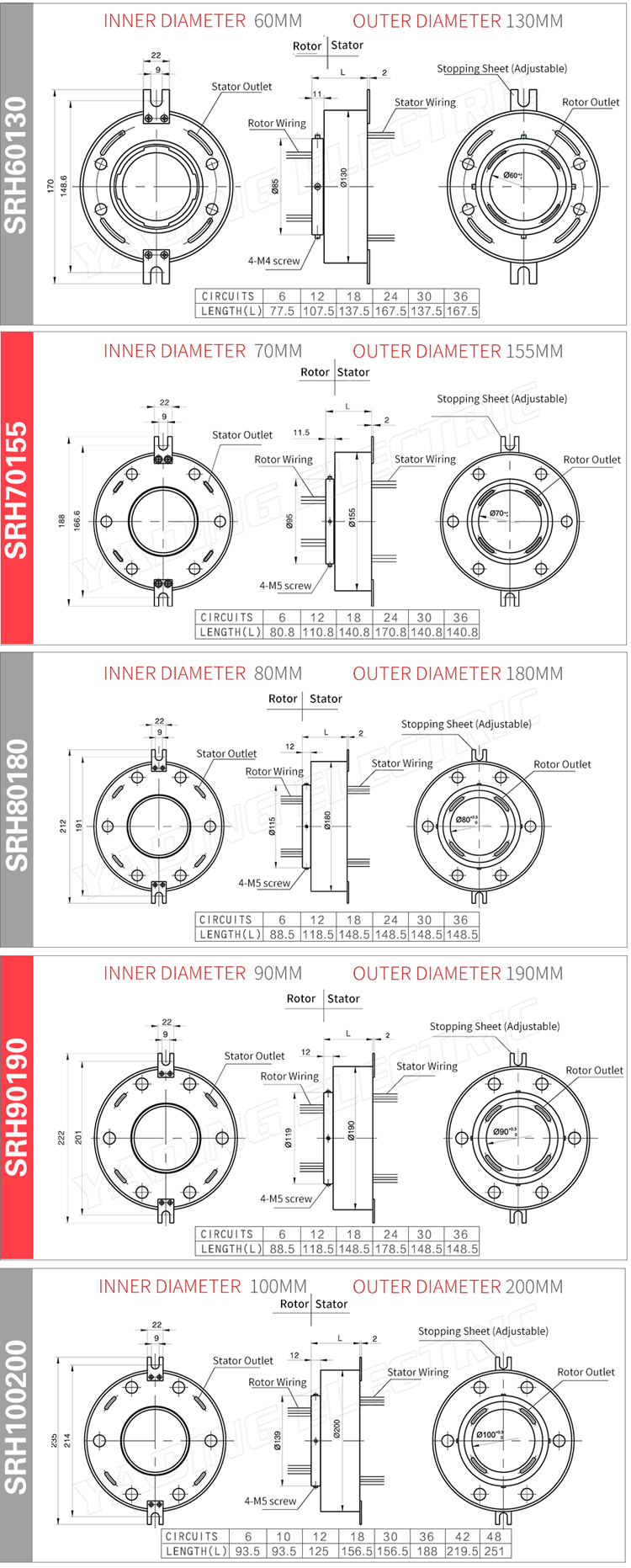 Through-hole slip rings, also known as hollow slip rings with a central hole, are suitable for any device that needs to rotate 360° and needs to transmit power and signals.
