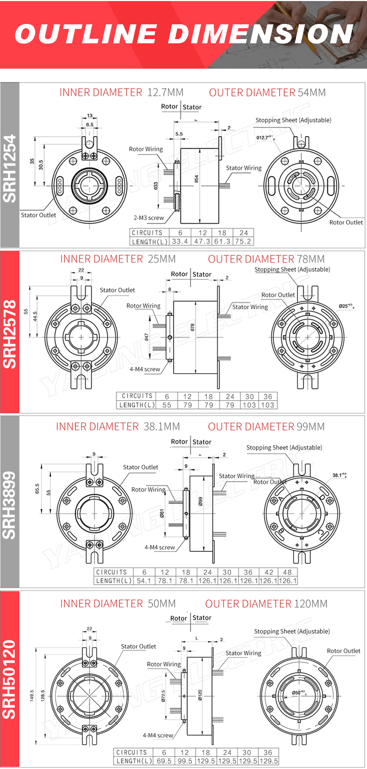 SRH 2578-4P ID25mm OD78mm 4 way 10A industrial through hole slip ring