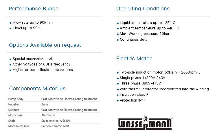 They are ideal for domestic use, especially in combination with small pressure units for distributing water and for irrigation of gardens and land.