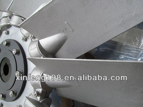 The blade is a space-distorted wing blade with variable cross-section. The wheel shell adopts windless clips. The structure is aluminum alloy precision die-casting. The blade is positioned by the clamping wheel shell, and the blade is fixed in the casing by the clamping wheel. It can be adjusted according to the user's needs, and the blades can also be adjusted to make the blades generate reverse airflow to meet the needs of reverse ventilation. It can be divided into positive and negative blade symmetrical forward and reverse ventilation. There are six kinds of blade installation angles from 15° to 40°, which can be adjusted statically and steplessly.