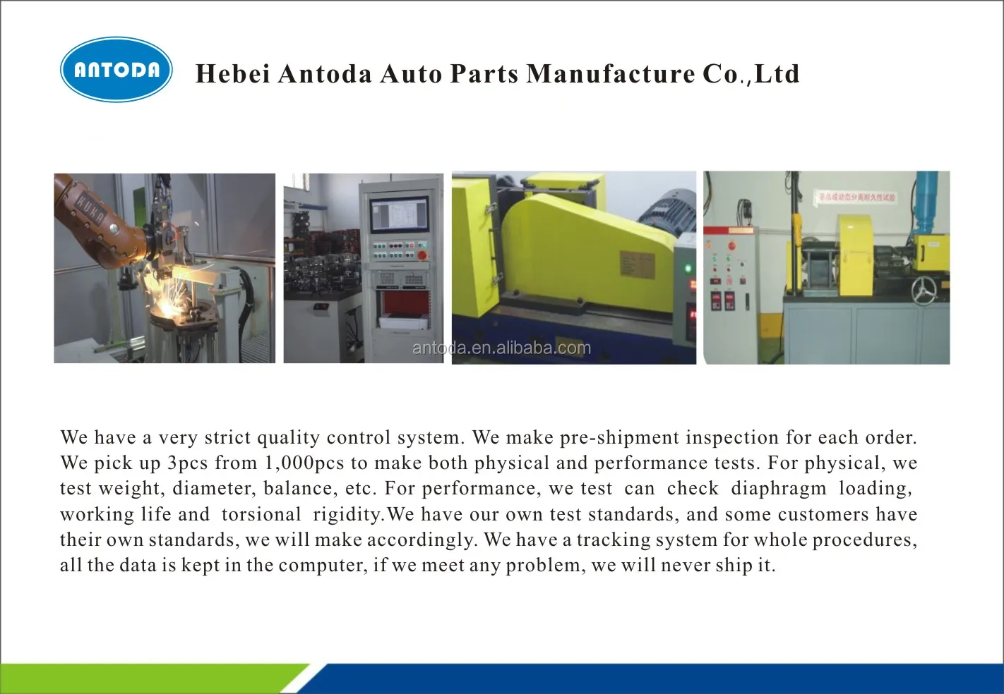 Hebei antoda auto parts manufacturing co. LTD was located in Hejian city Hebei province.Our main products are automotive clutch driven disc assembly,clutch cover assembly,tractor clutch assembly R & D.