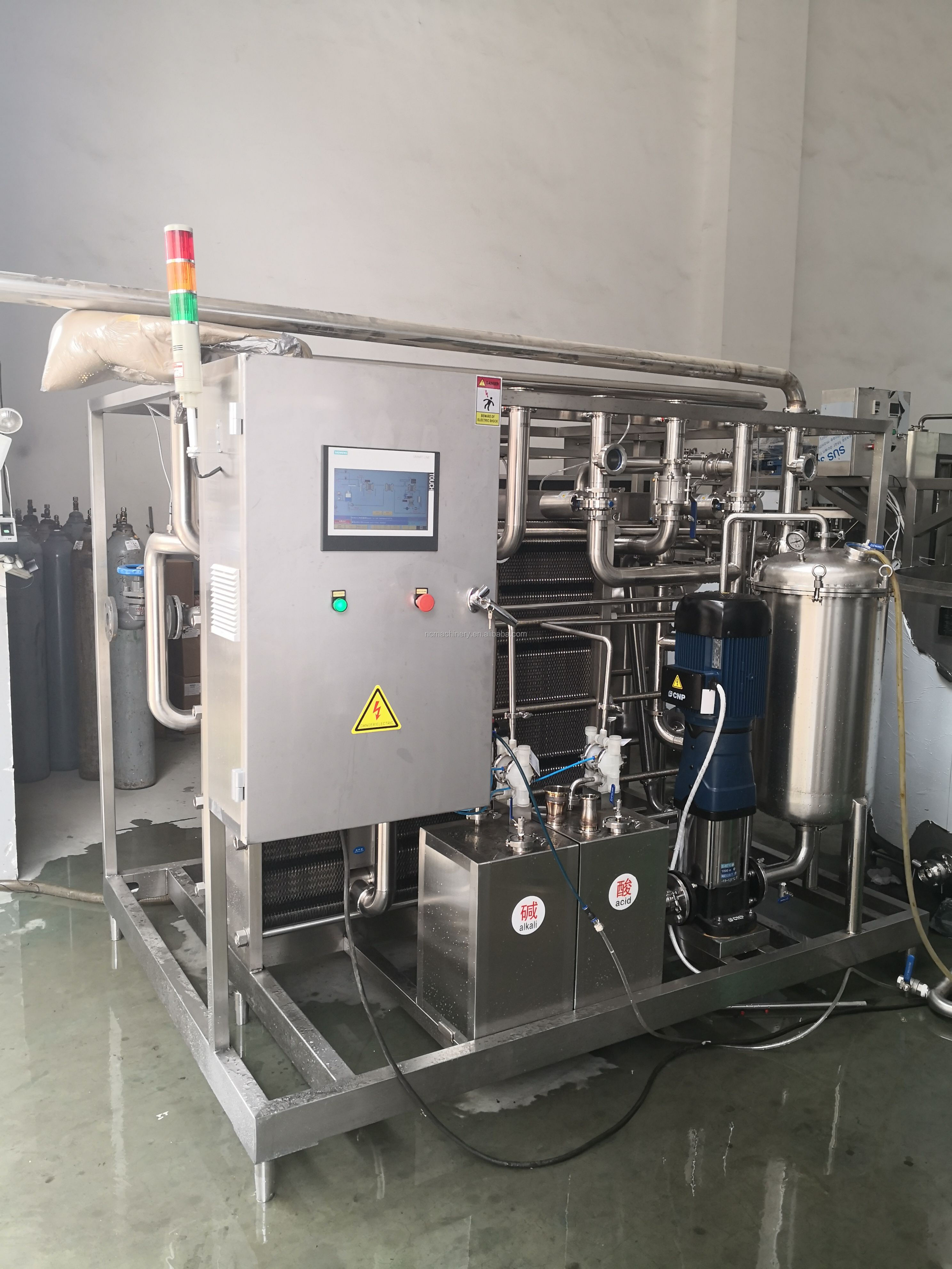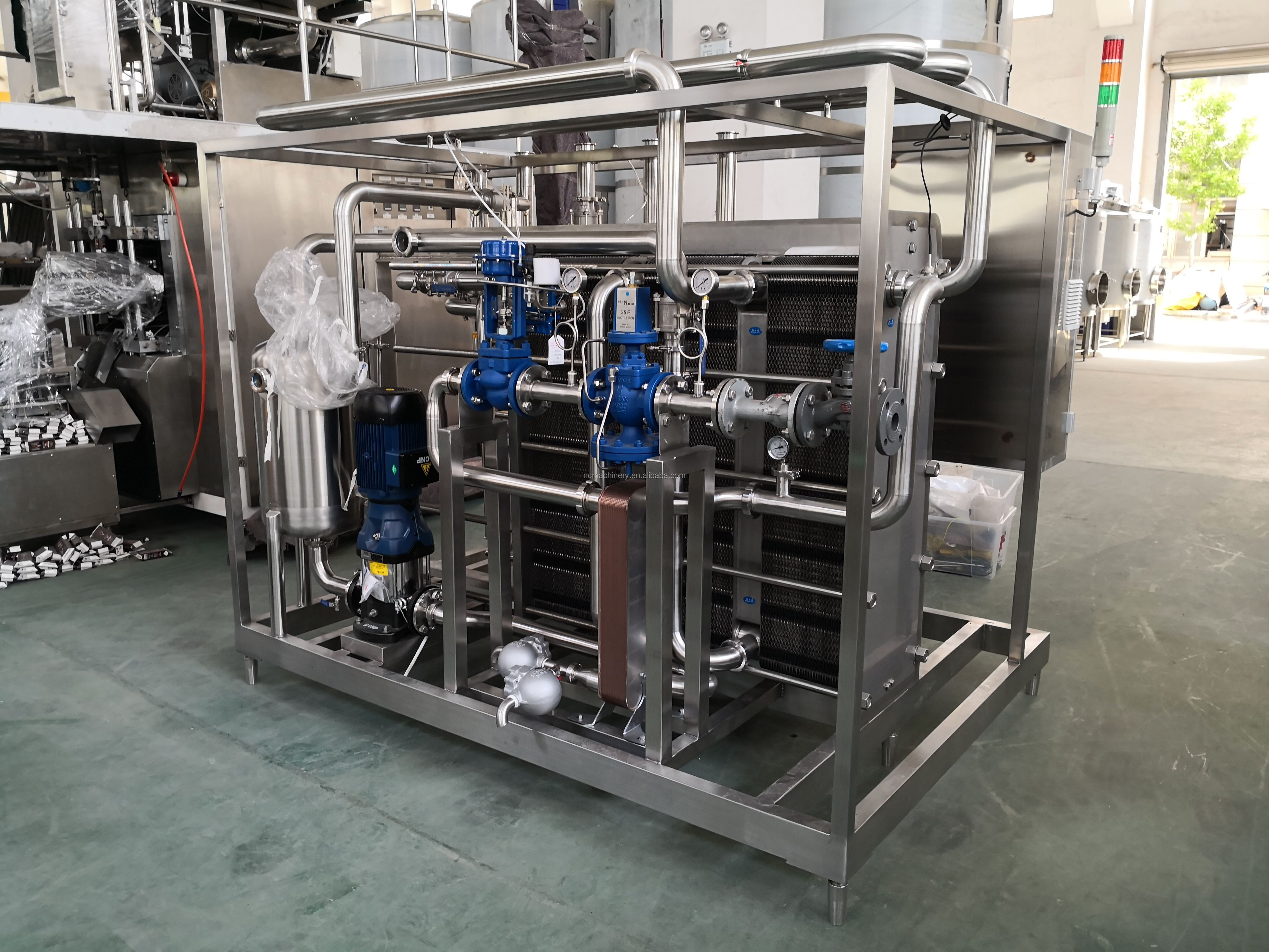 The plate pasteurizer is PLC controlled, and the capacity is optional from 1t/hr to 15t/hr. The system works in aseptic section and normal section to meet the technical requirements of low temperature, normal temperature and high temperature filling. The seven-stage heat exchanger ensures minimal energy consumption, and the CIP and SIP are perfectly designed to meet the needs of cleaning and sterilization. Using ultra-high temperature water as the medium to heat the material and adjust the filling outlet temperature, it has high precision.