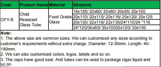 Child safe custom black or clear glass test tubes pre-rolled tubes for packaging | ||||||||