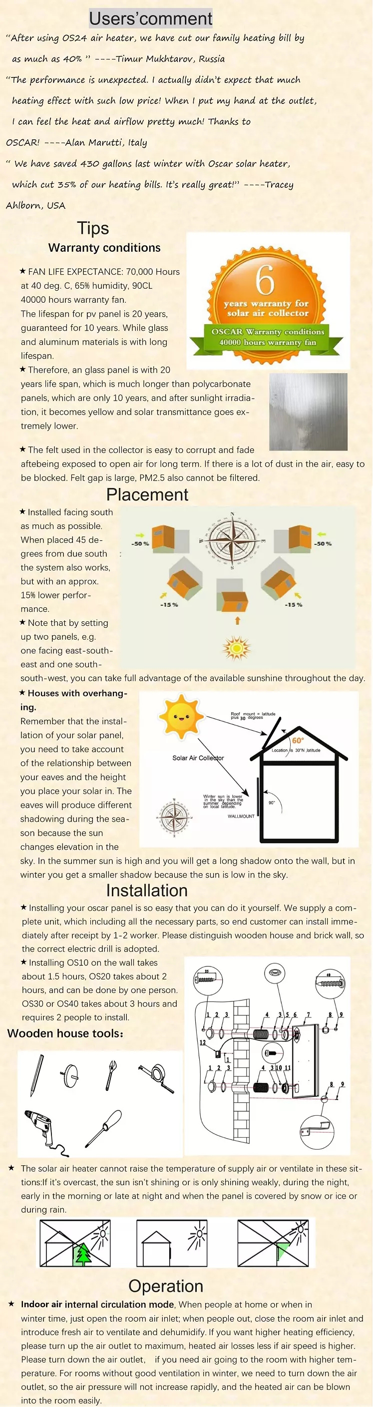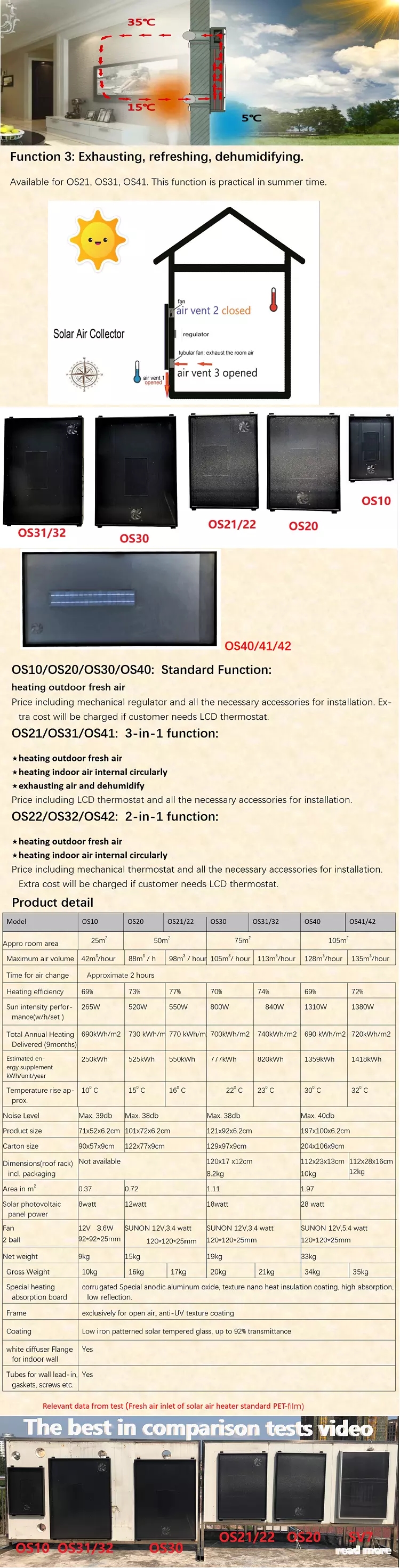 | 900W solar strength airflow | 42m3/ Hour |