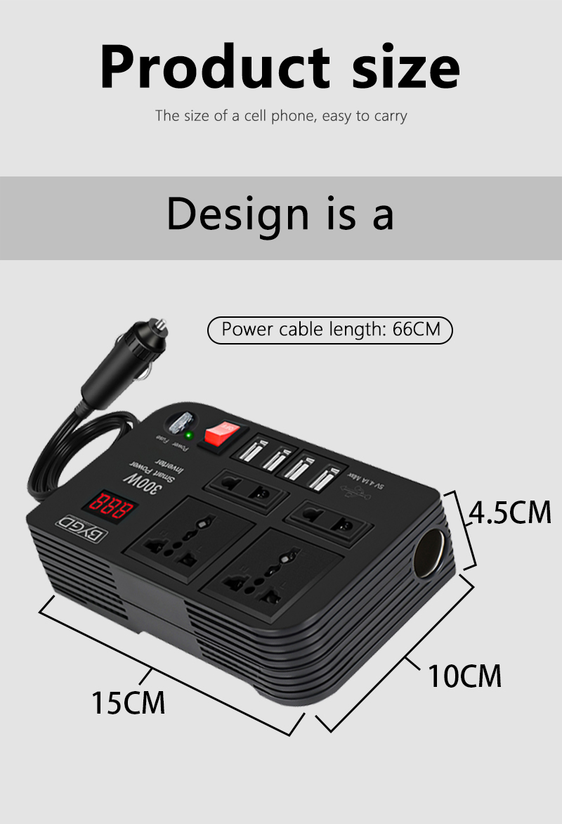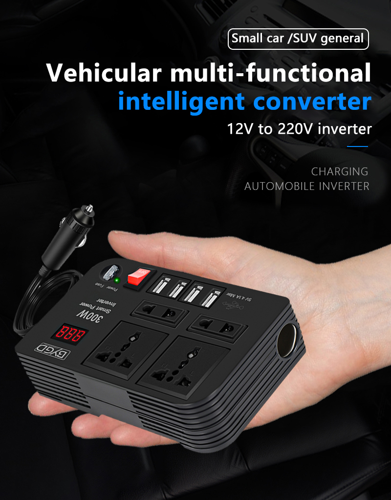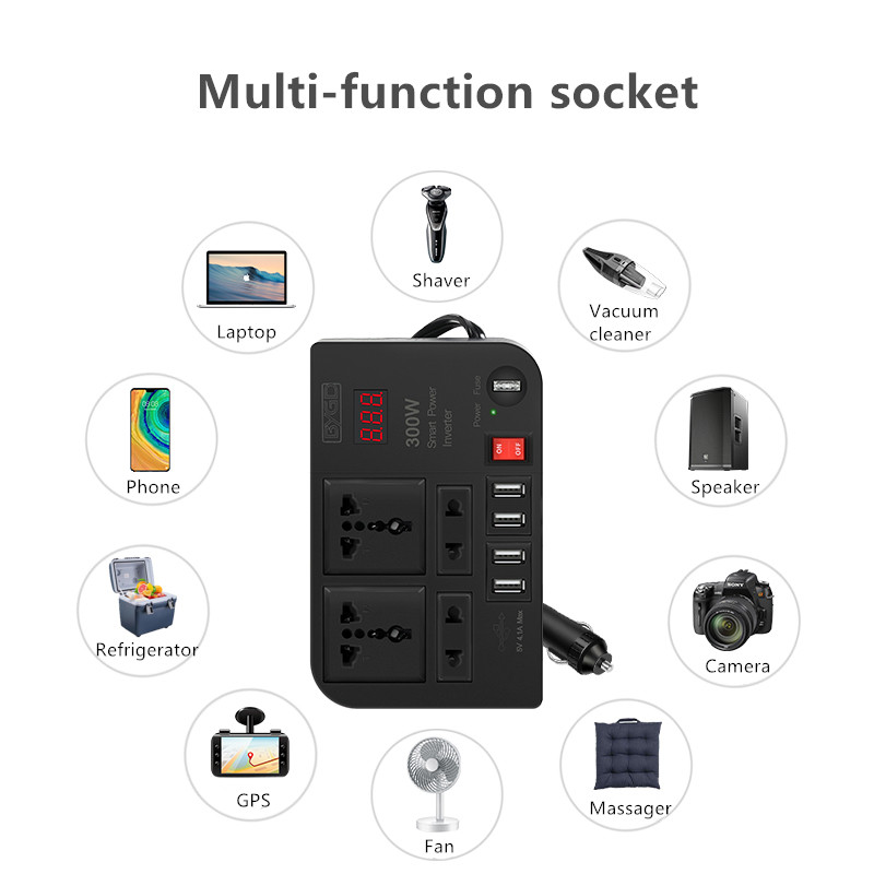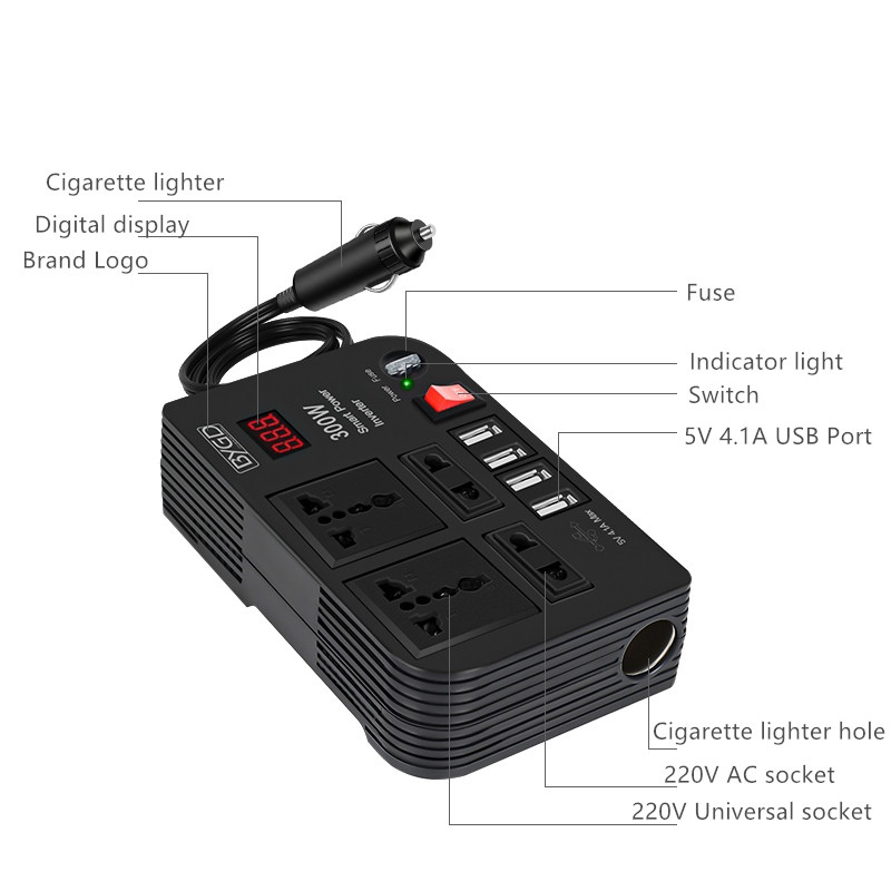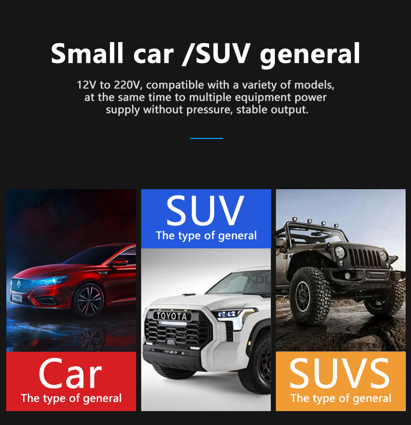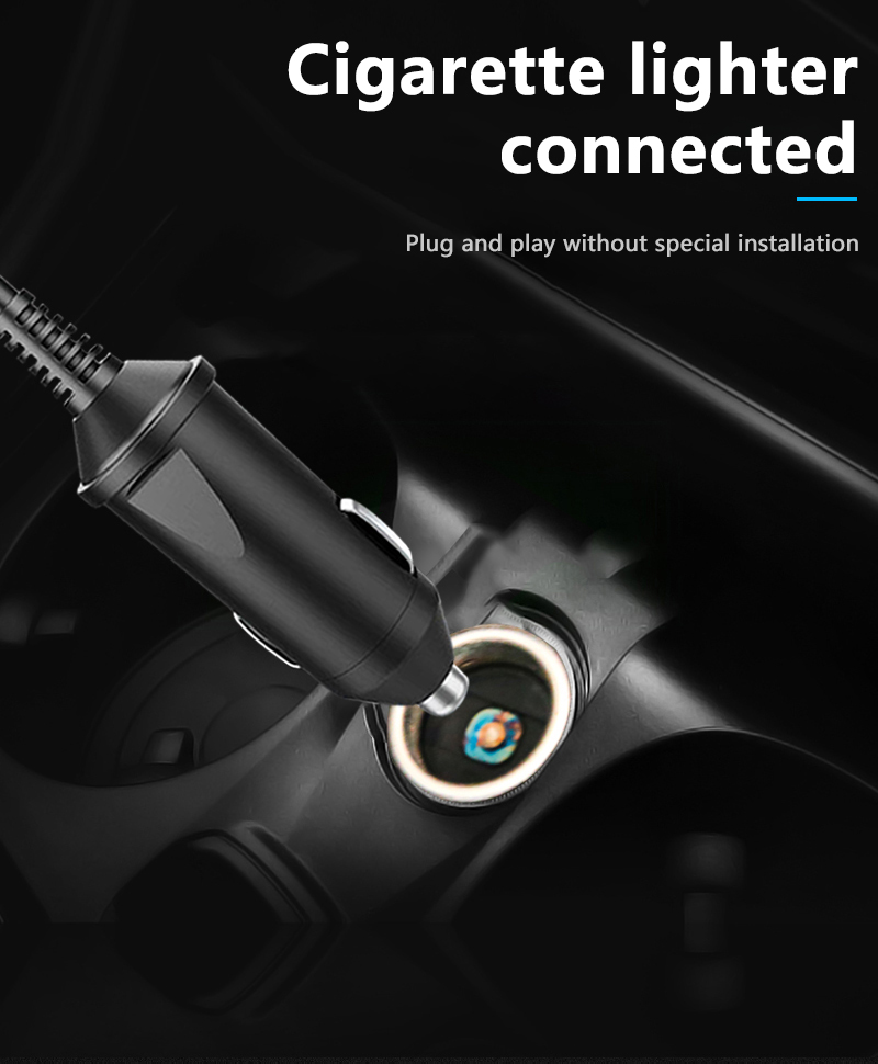 2) Insert the cigarette lighter plug into the cigarette lighter socket, turn on the switch, and when the green light of the inverter is on, insert the electrical plug into the AC socket of the inverter.