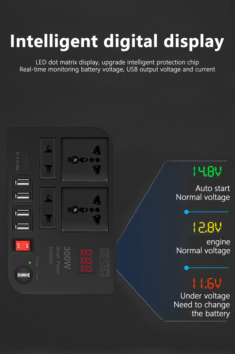 1) Turn on the switch, and when the green light of the inverter is on, insert the electrical plug into the AC socket of the inverter. )