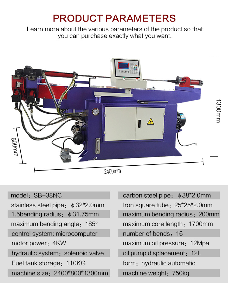 | Maximum usage of carbon steel pipe: | Diameter 38*2.0mm | Motor power (kW): | 4kW |