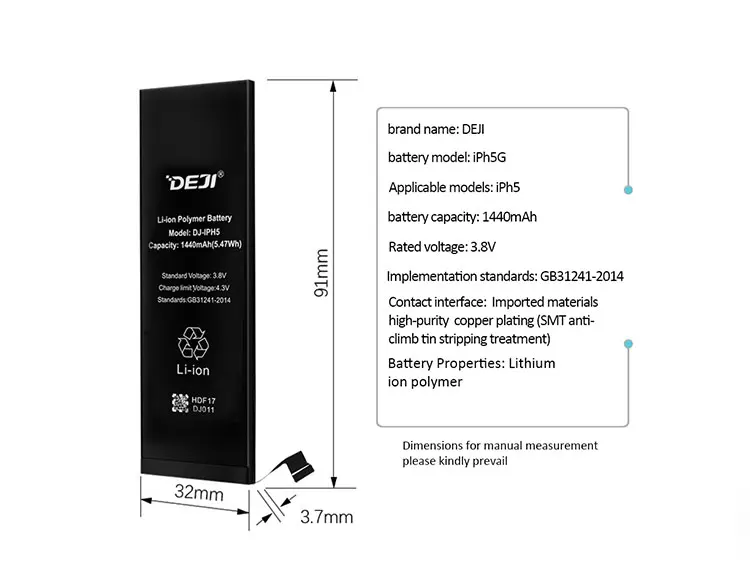 | Model Number: | DJ-IPH5; | Type: | Standard Battery; |