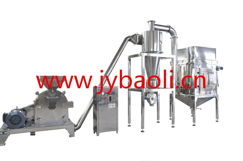 This machine is made up of crusher, cyclone separator, pulse dust-evacuator box and blower fan etc.The crushing size can be adjusted by the screen.Designed according to GMP standard and wholly made of stainless steel, this machine has no flying dust during production.