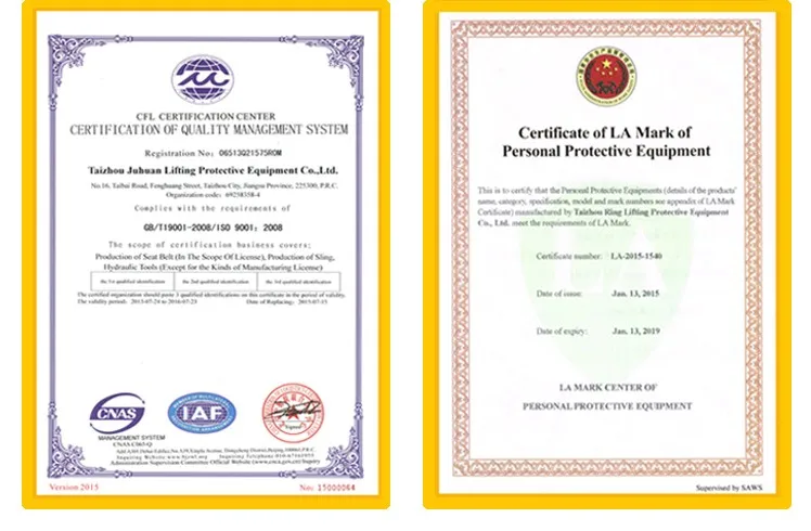 Q1: What kind of exhibitions has JOHA participated in ? A: JOHA participates in almost all the professional exhibitions annually,International Hardware Fair, China International Occupational Safety & Health Goods Expo,etc. Q2:How is JOHA's product? Is your product quality assured? A: All of our products meet CE, ISO9001:2008, LA standards. Besides,we take great pride in our well-equipped testing laboratory. All JOHA products will be inspected and tested before shipment. Q3:How to package goods? A: Generally safety harnesses are packed by nylon bag, non woven bag in carton/case. Q4: How is your payment term? A:Generally T/T 30% deposit in advance, 70% before delivery. Q5: Could I become a distributor of JOHA in my region? A: As long as you own the marketing resources in your region, we are glad to cooperate with abroad distributors and provide corresponding service. |