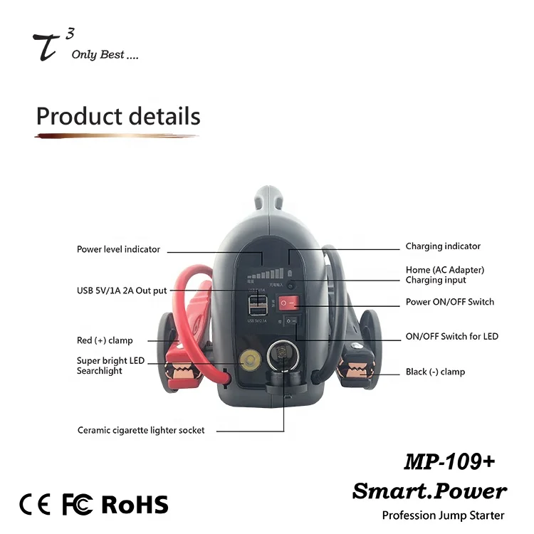 | Place of Origin: | Taiwan, China; | Product name: | High-performance Portable Car Battery Jump Starter; |