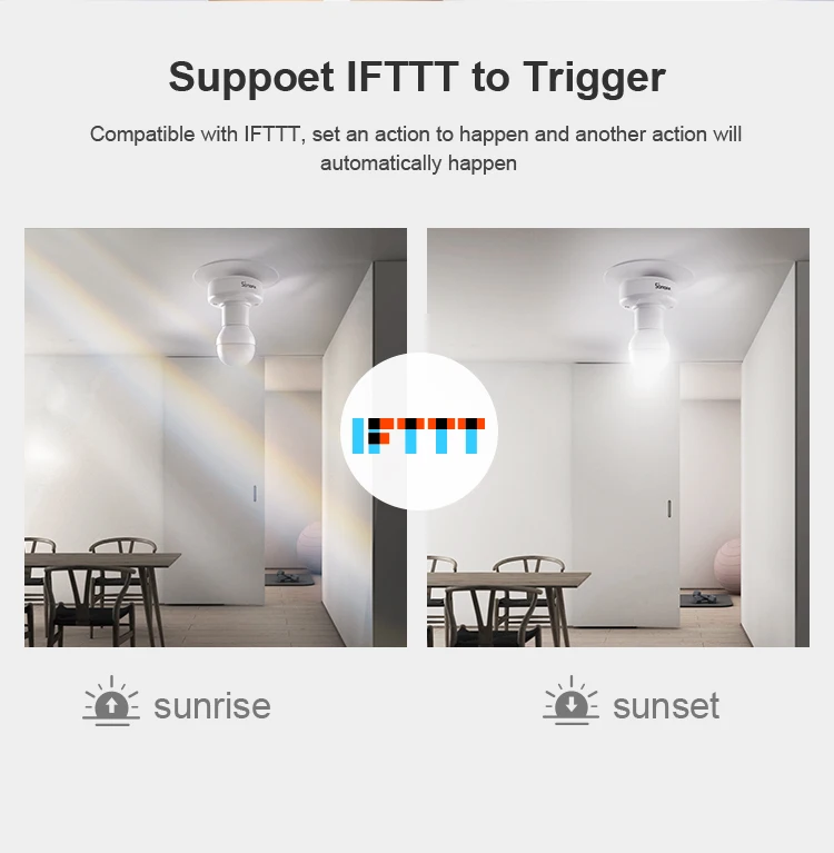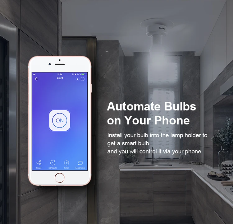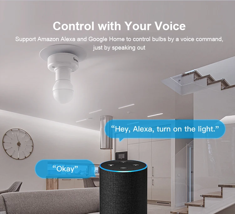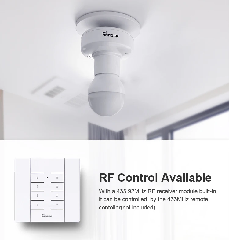 SlampherR2 is a Wi-Fi Smart Lamp Holder with E27 screw base is used to turn your traditional bulb into a smart bulb, giving you the ability to control it with your phone or voice when pairing with Amazon Alexa or Google Assistant. Furthermore, it allows SONOFF RM433 remote controller to control. Support timing function to turn on or off automatically at the time you preset, to reduce the needless electricity consumption. With SlampherR2 smart lamp holder, the connected bulb can be turned on or off via your phone, some other devices pairing with the eWeLink App are also turned on or off. That’s smart scene function. Other features like IFTTT, LAN control, share control and power-on status are also available. Follow SlamphR2 to ease into your basic smart home!