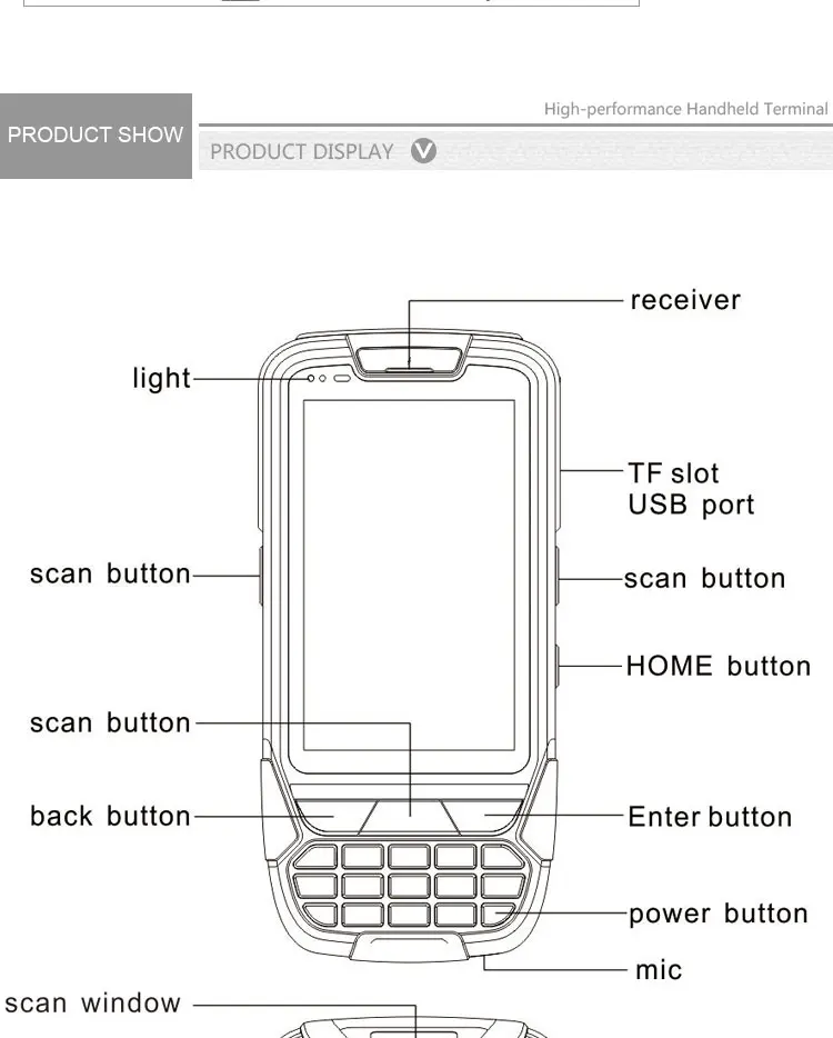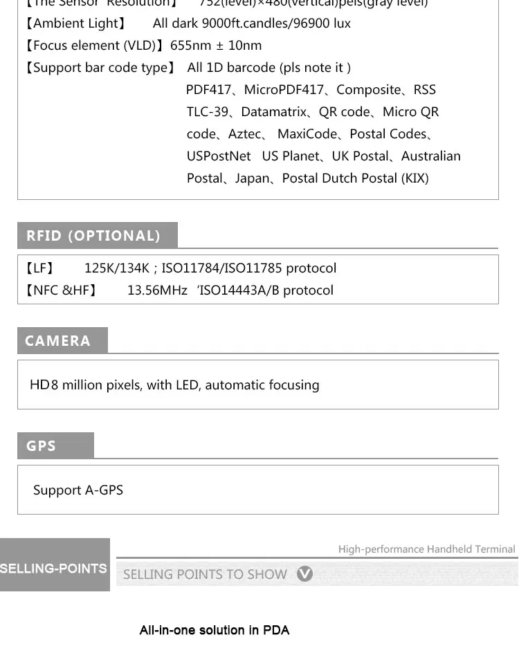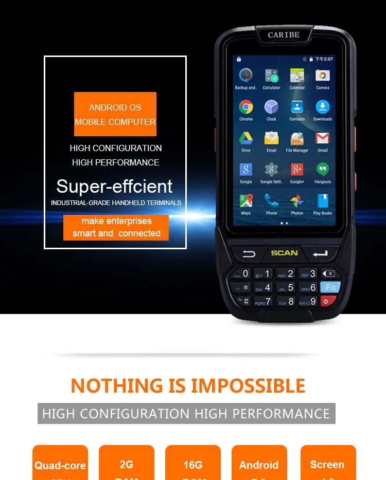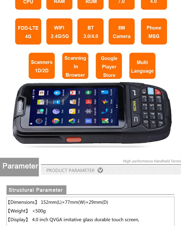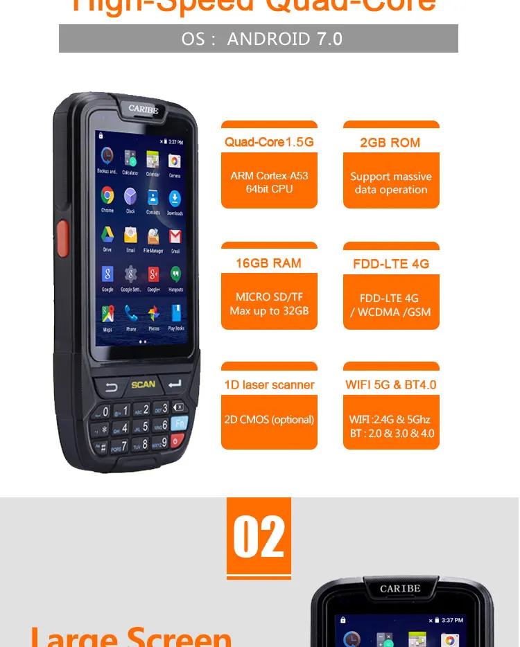 | CPU: | Quad Core 1.5G; | Barcode scanner: | 1D/2D Barcode Scanner Optional; |