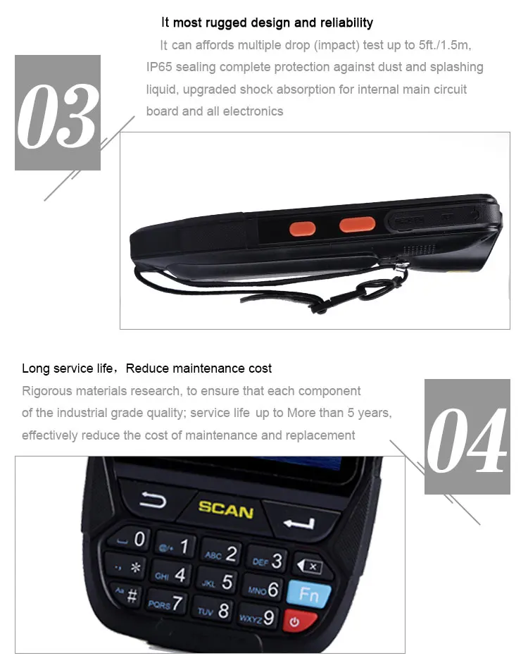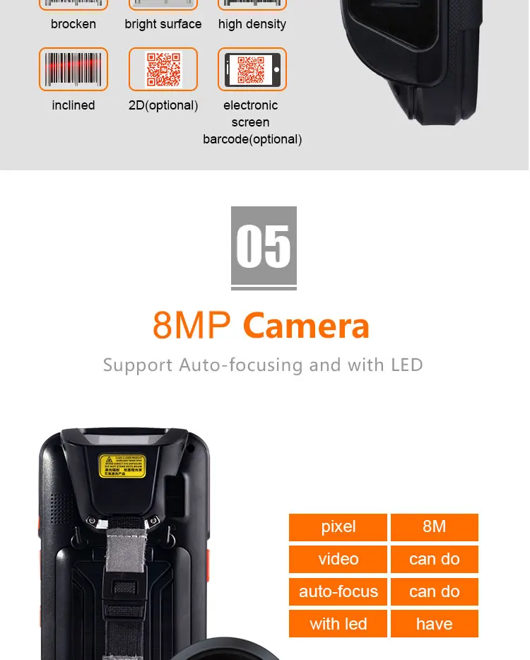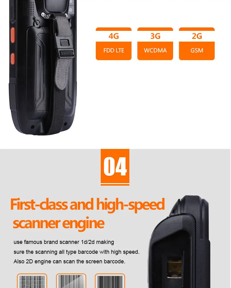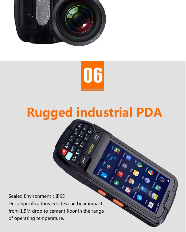 | Processor Type: | MTK 6735; | product name: | android rugged industrial pda with 4G wifi 1D 2D scanner NFC; |