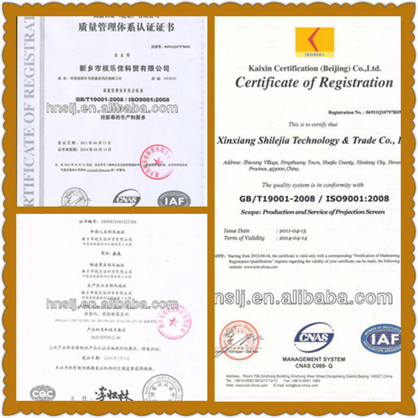 | XINXIANG SHILEJIA SCIENCE&TECHNOLOGY TRADING CO., LTD was founded in 1983,Which is the first manufactory of projection screen in China and also the first WELFARE factory of projection screen in the world, which get strong support from China government and American foundation. | |||||||||||||||||||||||||||||||||||||||||||||