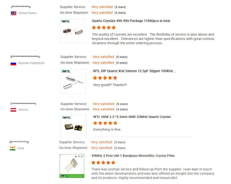 WTL is a professional manufacturer of Quartz Crystal Electronic Components in China, Established in 2001, Which Specializes in researching & developing, producing and marketing, WTL offers kinds of crystals in order to pace with wide applications.whatever you do need ,standard or high-class requirement on special fields, we will support you right quartz crystal resonator and oscillator with 100% repliability insurance.