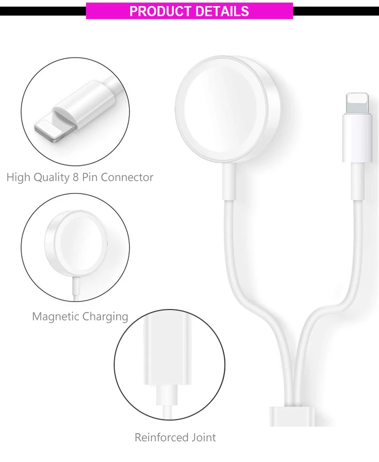 | Items | 2 in 1 mobile phone 8 pin usb data fast charging cable Magnetic Wireless Charger pad for watch |