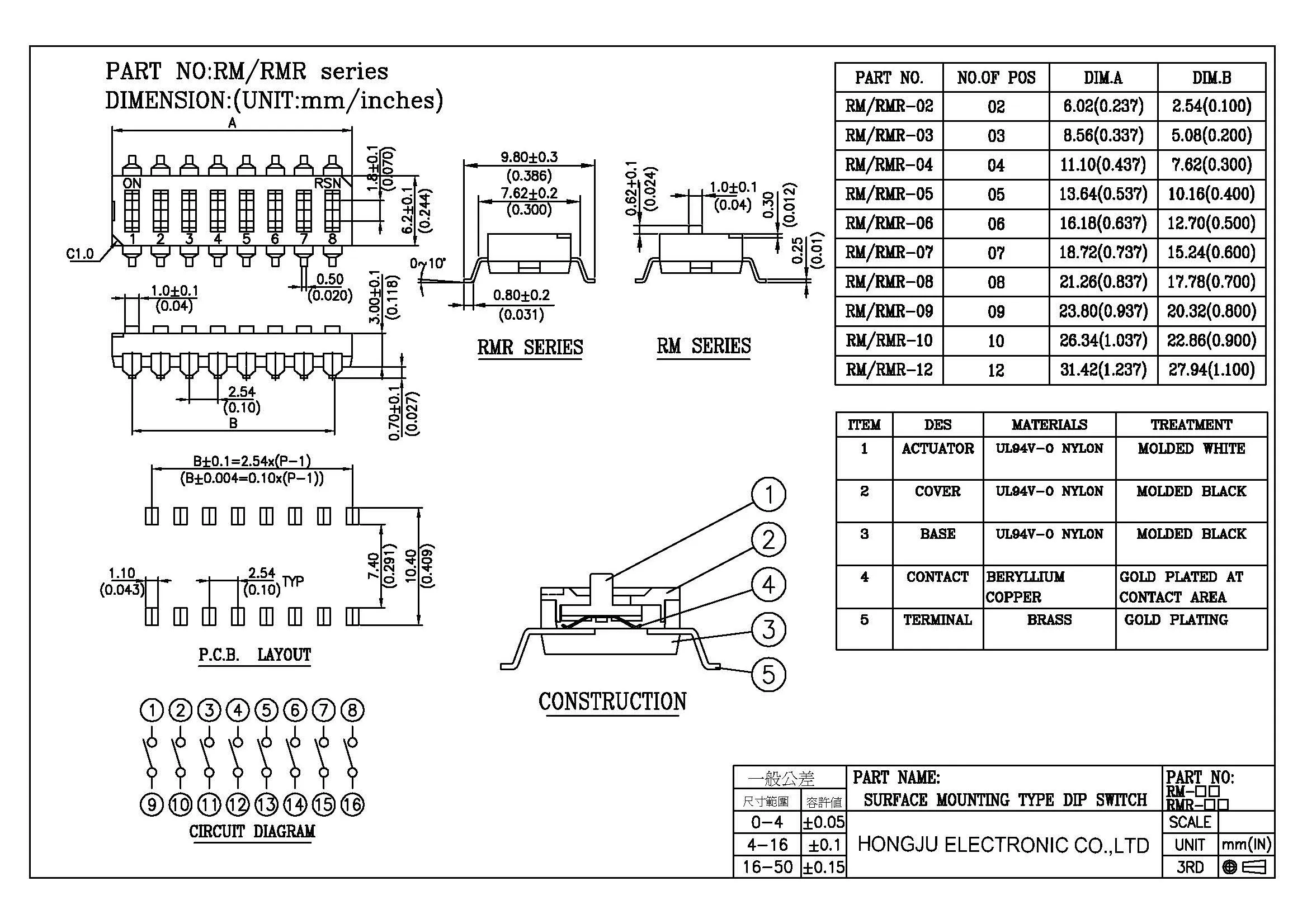 | Brand Name: | HONGJU; | Product Name: | HONGJU SMD 6 Position DIP Switch With 2~12 Position Switch; |