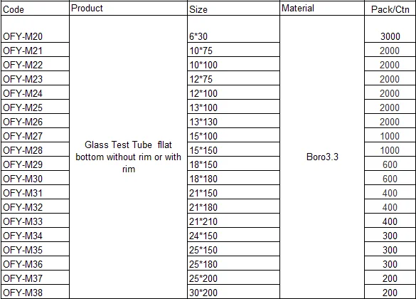 1. Test tube with rim is made of Boro 3.3 glass or soda glass.