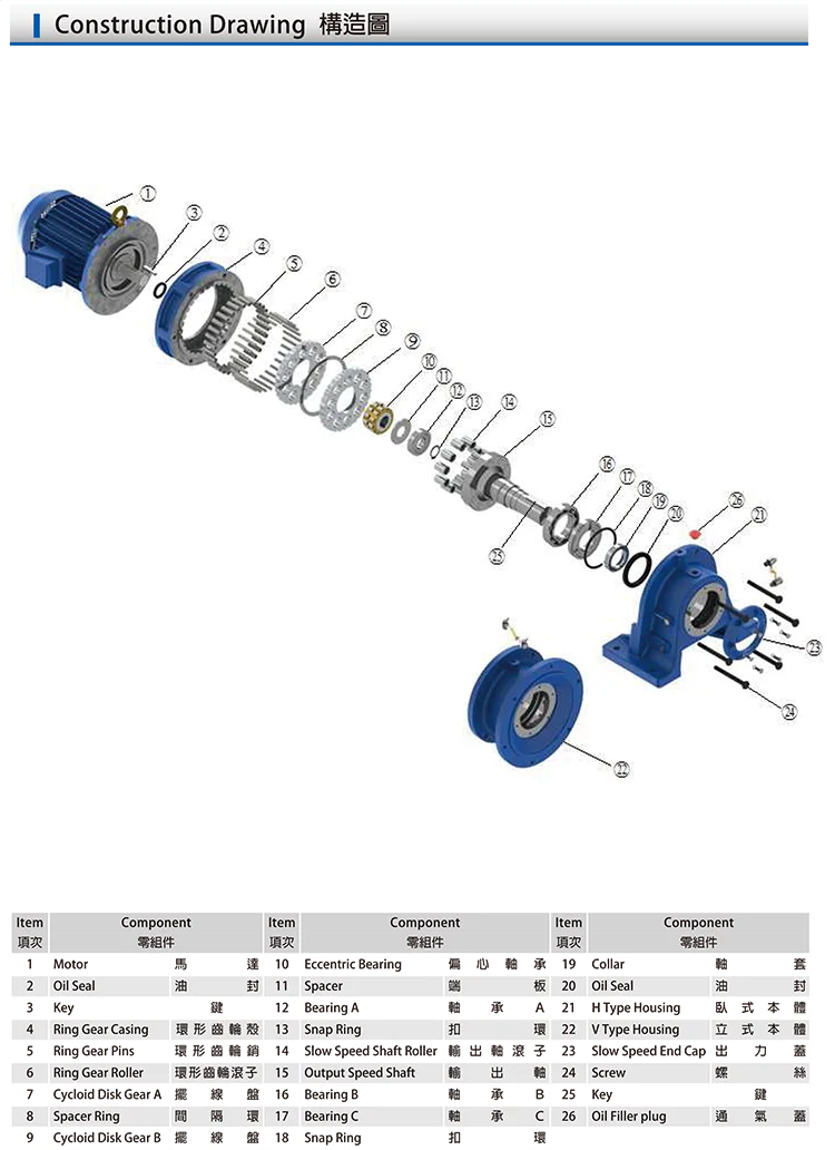 High Strength Low Alloy Stell(JIS SCM21) with oversized bearings for excellent overhung load capacit and outstanding performanc.