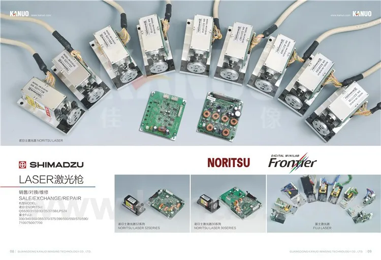 Shimadzu Oringal & Brand-new Laser Gun, Laser Unit, AOM, Paper Magazine, Ink Ribbon, Filters, Splicing Tape, Heater,Gears, Cross Over Rack, Guide, Rollers, Keyboard Overlay, Belts, Lamps, Circulation Pumps, Replenisher Pumps, Negative Mask, Springs, Sheath, Nozzle, Laser Reflecting Mirrors,