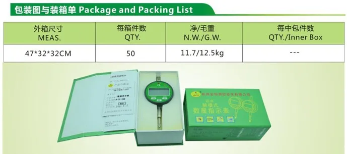 | Type: | electronic digital indicator; | Packaging Detail: | MEAS : 47*32*32cm QTY: 50 N,W./G.W. : 11.7/12.5kg; |