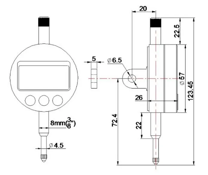 | Resolution: | 0.01mm/.0005"; | Stem diameter: | 3/8"; |