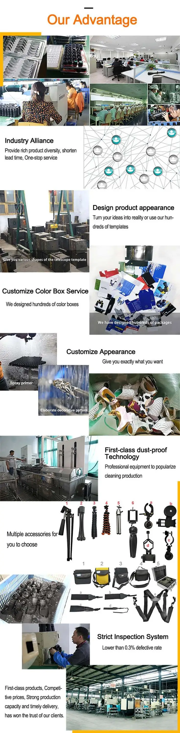 We are well-experienced manufacturer specialized in producing binoculars,rifle scopes, telescopes for more than 15 years.