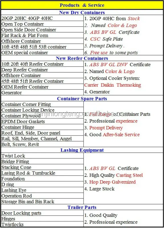 » Other related products: Dry and reefer container, offshore containers, container parts, etc.