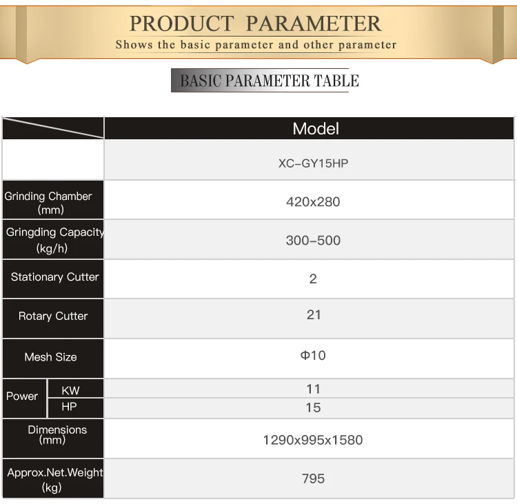 | Power: | 15HP; | Capacity: | 300-500kg/h; |