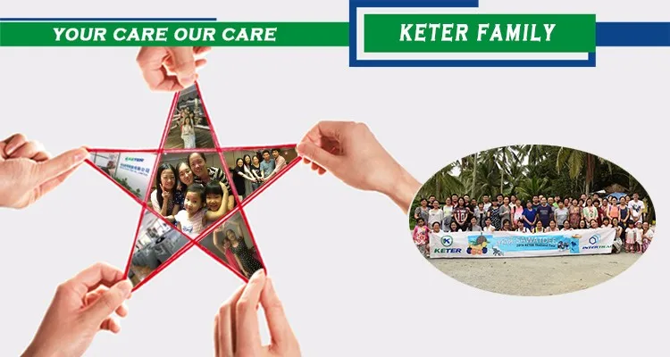 4>Keter service: We can supply the marketing support. We have our own Professional Marketing Team, which is specializing in marketing for our two brands, to design and prepare the Promotion items for us, also help customers achieve marketing plan in their loacal market and so on.