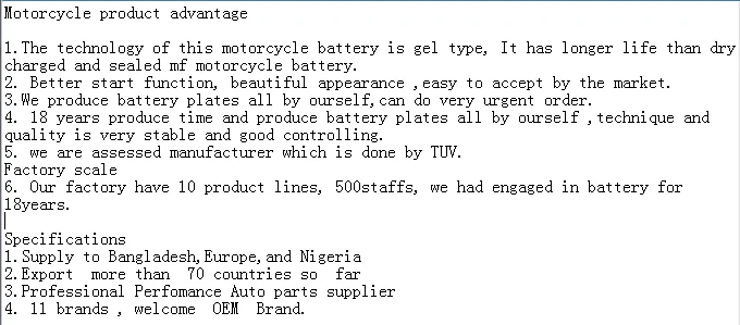 | Delivery Detail: | 18-20 days; | Battery type: | Motorcycle gel battery; |