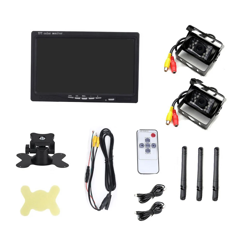 2. Two Wireless Ir Night Vision Waterproof Rearview Back Up Reverse Cameras --Auto Water-resistent Camera Lens, with 18 individual Infrared (IR) LED. Effective range up to 15m.