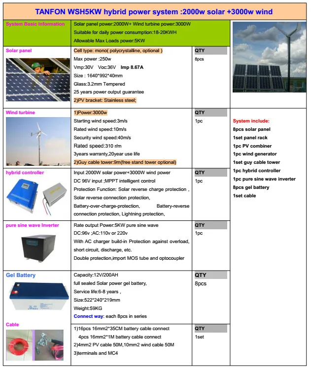 | System: | wind solar hybrid power system; | wind turbine power: | 3KW; |
