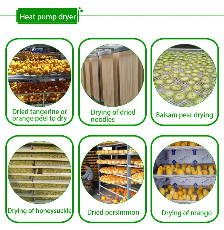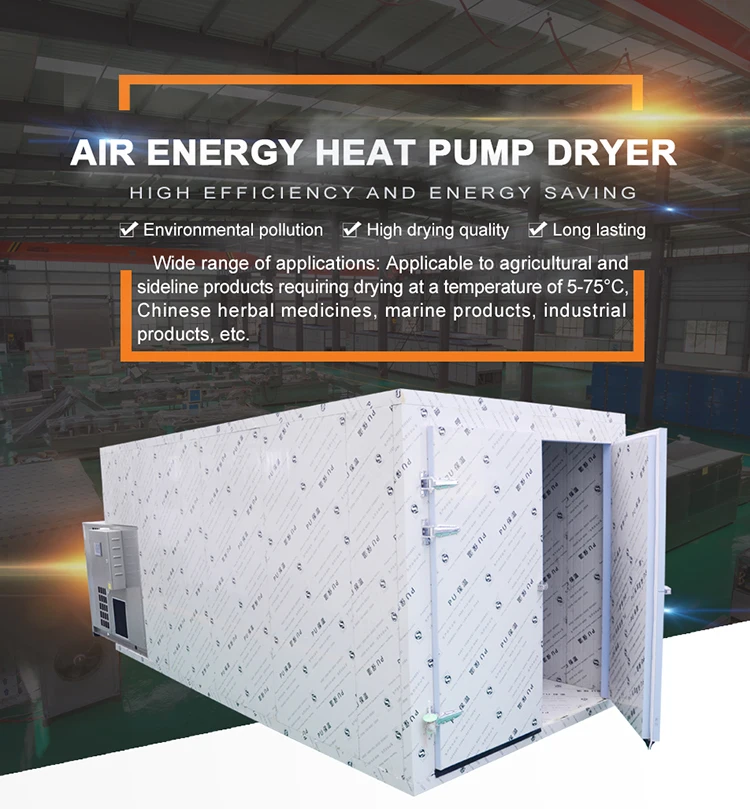 The heat pump can be used in many application,like agriculture,industry,seafood,grain,herbs,construction,paper products,seasoning,mineral industry,etc