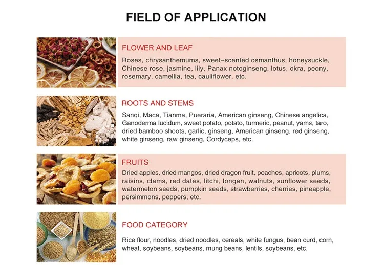 5. during drying, the material does not craze,does not distortions, nondiscolouring, never degenerate, non-oxidize, drying completely, with good Rehydration, keep nutrient content.