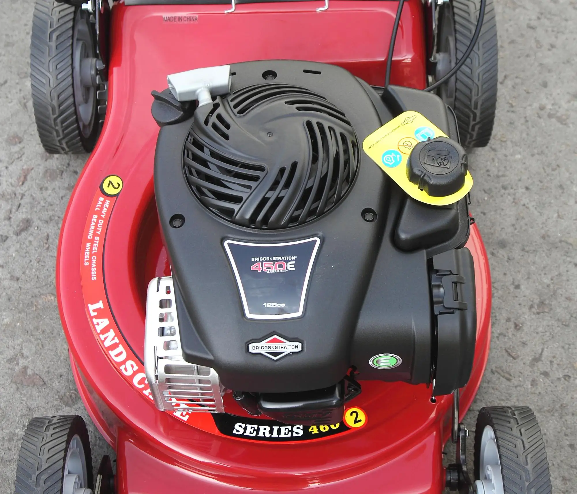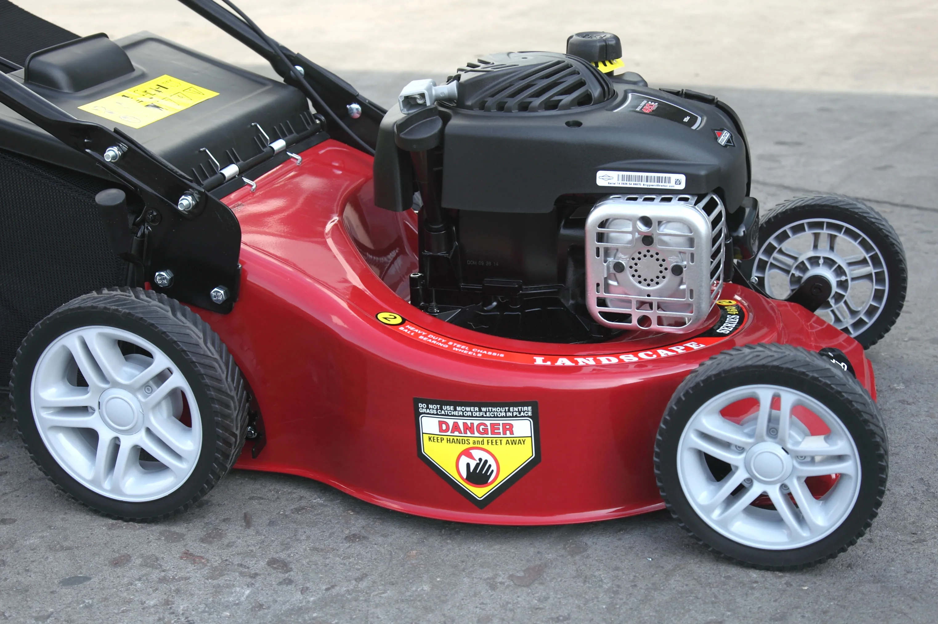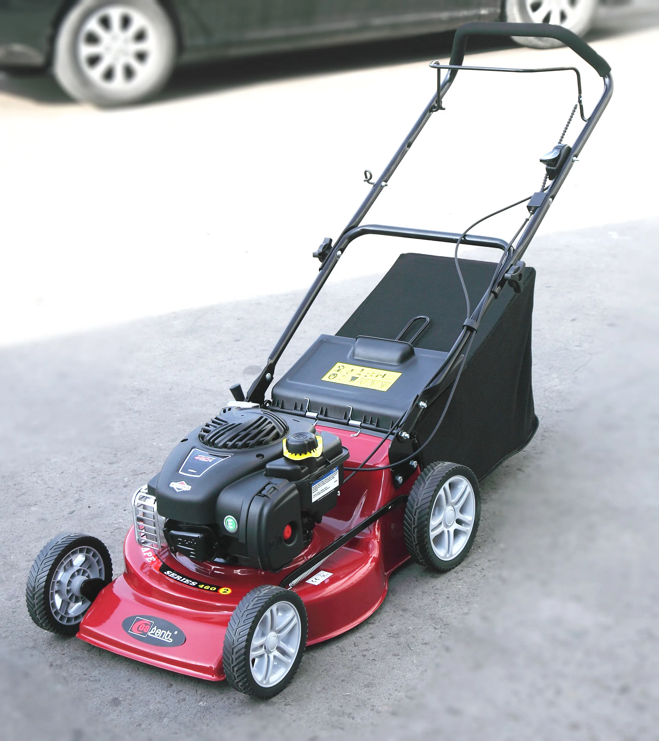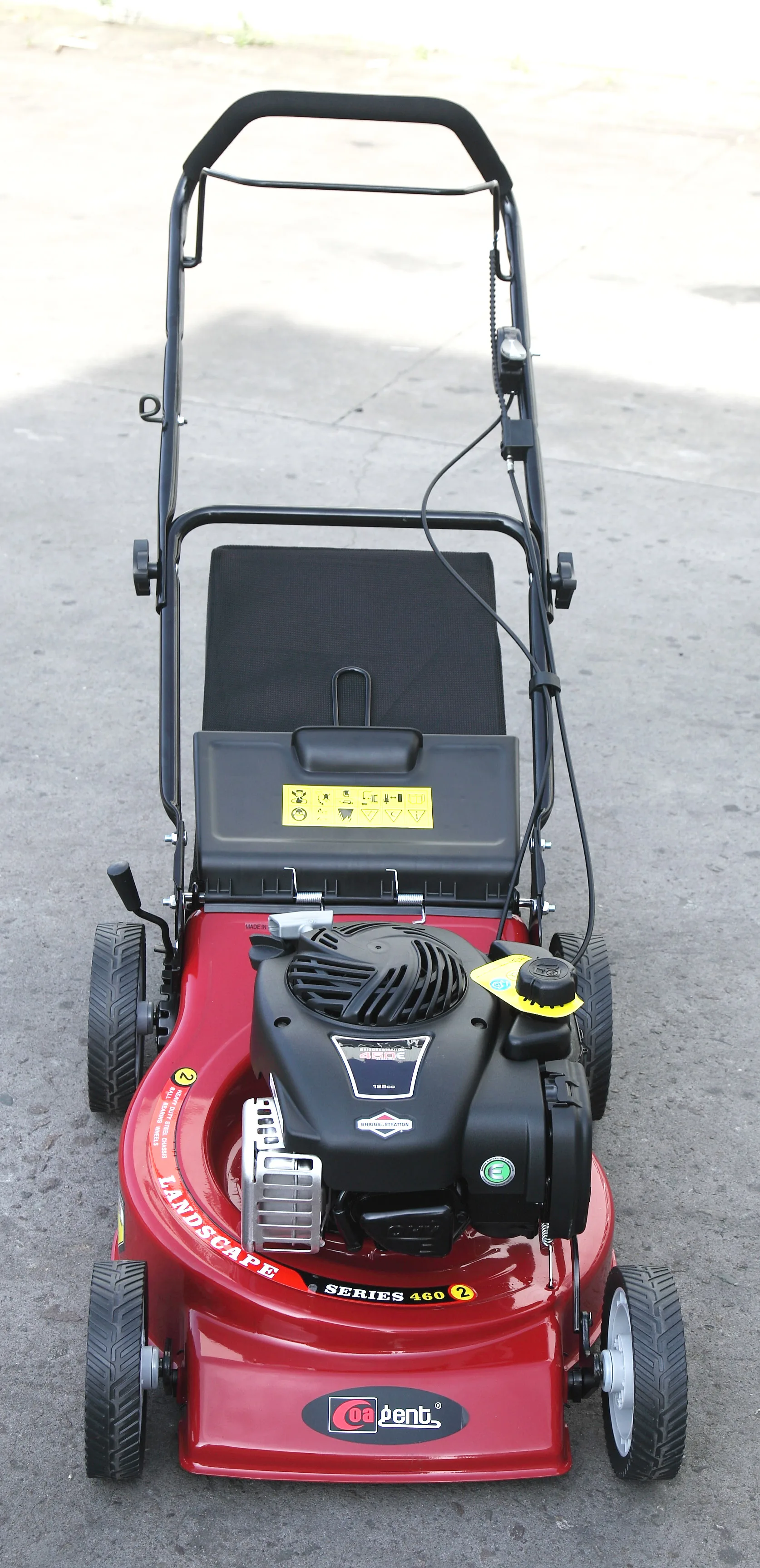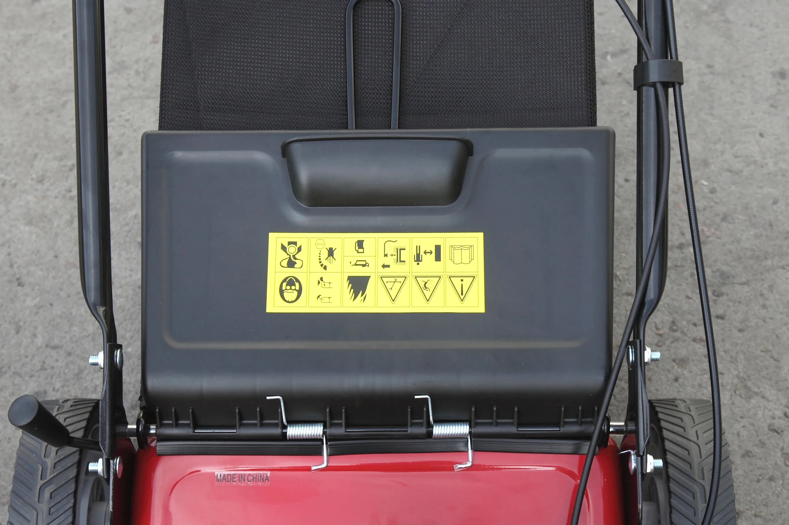 1) Drive type: hand push lawn mower with brake lever and throttle cable